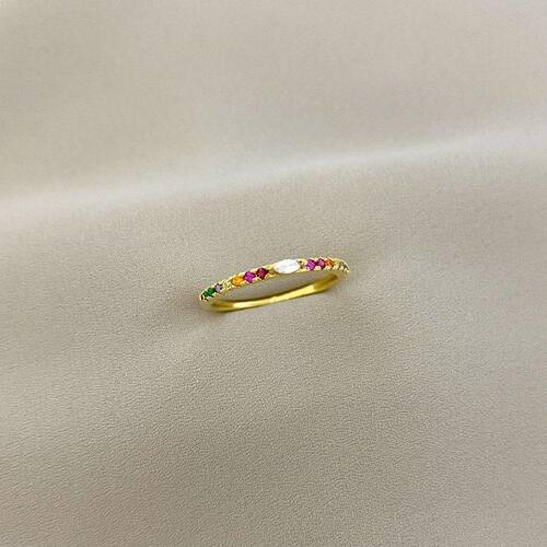 Anél Ponto de Luz Losango Cravejado com Zircônia Colorida Banhado a Ouro