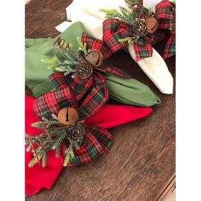 Anel Porta Guardanapo Decoração Natal Vermelho Xadrez 08 Un