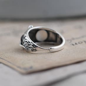 Anel prata 925 coruja olho azul ajustável Anel ajustável em prata esterlina 925 coruja com olhos realistas azuis.