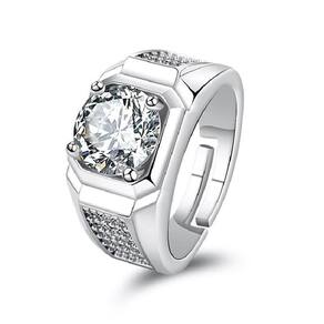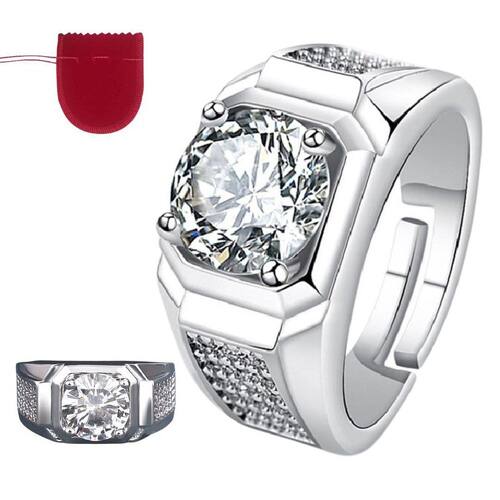 Anel Prata 925 Lapidação Moissanita E Zircônia Ajustável - regulável