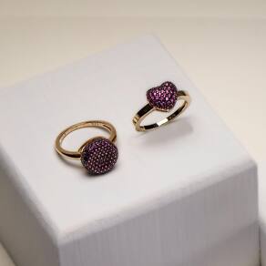 Anel em Prata Revestido com Ouro 18K Botão 12mm Cravejado com Zircônia Vermelha