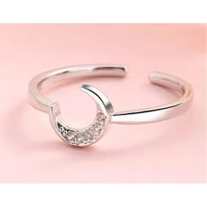 Material: liga metálica Cor: prateado Diâmetro: 17cm Largura da superfície da lua: 8mm Estilo: moderno, clássico, delicado Tipo de anel: ajustável