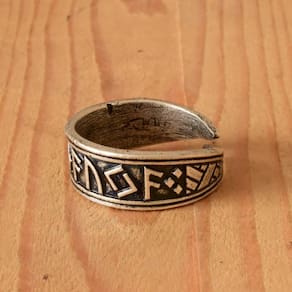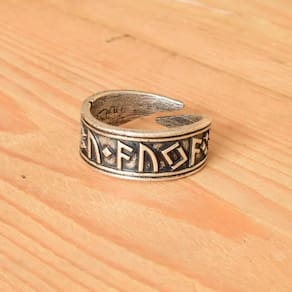 Anel Prateado Runas Viking Regulável Anel Prateado Ajustável você pode apertar ou alargar, caso seja necessário Perfeito para todas as ocasiões, inclusive para presentear, já que não precisa saber exatamente o tamanho pra comprar. Por ser ajustável cabe perfeitamente em qualquer circunferência anelar. Largura de superfície: 10mm Peso líquido: cerca de 6g
