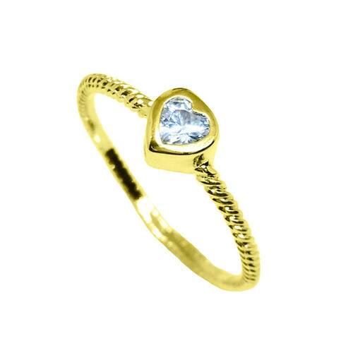Anel Banhado a Ouro 18k com Zircônia Coração e Aro Trabalhado Fininho. Delicado e perfeito para embelezar e completar seu estilo.