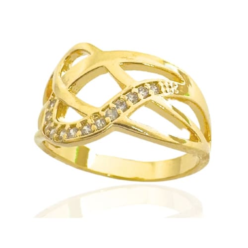 Anel Trabalhado Com Zircônias Cristais Banhado a Ouro