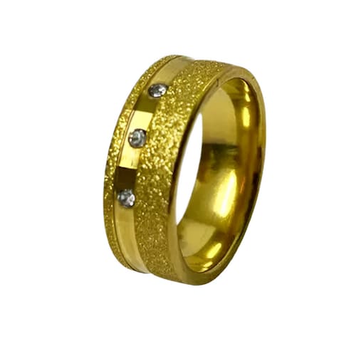 Descrição de Venda: Anel Trabalhado Metal Dourado 3 Pedras - Aço Inoxidável 8MM