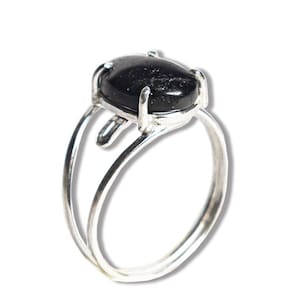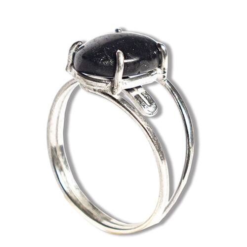 Anel Turmalina Preta Cabochão Oval 10mm Ajustável Prata 950, Anel em Prata 950 Pedra natural e exotica lapidado Cabochão Oval Liso Montagem manual Prata de lei com aro ajustavel em qualquer dedo joia reforçada com pedra Brasileira mineral autêntico de garimpo