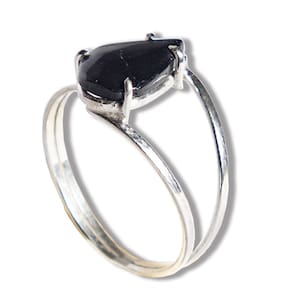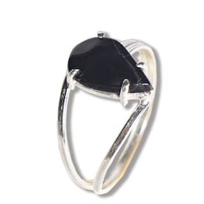 Anel Turmalina Preta Gota Lisa 12mm Aro Ajustável Prata 950, Anel em Prata 950 Pedra natural e exotica lapidado Cabochão Gota Lisa Montagem manual Prata de lei com aro ajustavel em qualquer dedo joia reforçada com pedra Brasileira mineral autêntico de garimpo