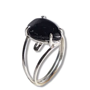 Anel Turmalina Preta Gota Lisa 14mm Aro Ajustável Prata 950, Anel em Prata 950 Pedra natural e exotica lapidado Cabochão Gota Lisa Montagem manual Prata de lei com aro ajustavel em qualquer dedo joia reforçada com pedra Brasileira mineral autêntico de garimpo