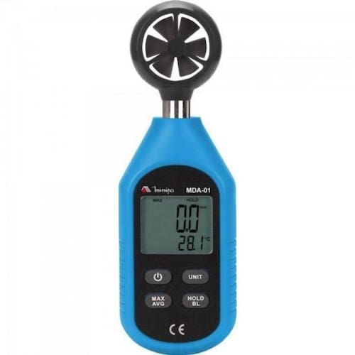 Anemometro Mini Amb Mda-01 Minipa O MDA-01 é um mini-anemômetro digital de uso interno, seguro e estável. Nivel de Poluição: 2. Amplamente utilizado em mineração, setor elétrico, ferro e aço, petroquímico, economia de energia, navegação, indústria de ventilação, exaustores, esportivo e outros. Display:principal 4 Dígitos (9999 Contagens) Temperatura:-10°c ~ 50ºC Alimentação:3 x 1,5V AAA Dimensões: 160mm x 50mm x 28mm Peso: 118g