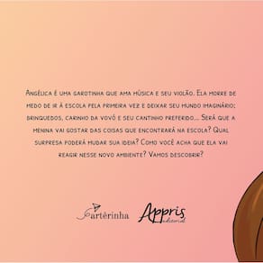 Angélica é uma garotinha que ama música e seu violão. Ela morre de medo de ir à escola pela primeira vez e deixar seu mundo imaginário; brinquedos, carinho da vovó e seu cantinho preferido... Será que a menina vai gostar das coisas que encontrará na escola? Qual surpresa poderá mudar sua ideia? Como você acha que ela vai reagir nesse novo ambiente? Vamos descobrir?