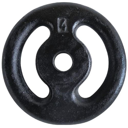 Possui duas pegadas facilitando o manuseio no da colocação da Anilha na Barra ou Equipamentos.