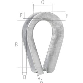 Aplicação: Indicada para facilitar a confecção de laços e ilhoses de cabo de aço, além de proteger do desgaste por atrito, recomendada para aplicações leves, não deve ser usada em aplicações de movimentação de cargas como tração, elevação ou estaiamento de torres. A medida da anilha/sapatilho deve ser compatível com o diâmetro do cabo.
