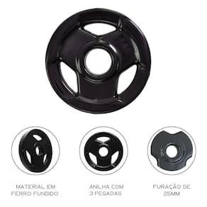 As Anilhas Sports Premium da Ahead Sports, são uma excelente alternativa para quem busca um treino de qualidade e segurança, para obter os melhores resultados. Com seu Design diferenciado, acabamento em borracha e sua pegada cromada, garante uma melhor aderência na hora do treino, trazendo estabilidade durante a série. Referência quando o assunto é ótima qualidade e um acabamento impecável, para uso residencial ou comercial. Agora é possível restaurar inúmeros benefícios para sua saúde e bem-estar, e ter treinos cada vez mais completos e intensos. Principais Características -Segurança que evita que suas mãos escorreguem; -Máxima durabilidade e Resistência; -Extremamente durável e resistente; -Facilidade de transporte Especificações Técnicas PVC reforçado e pegada anatômica. Com furação de 25mm cabem em nossas barras texturizadas standard. Dimensões: 3X20cm Diâmetro central da anilha: 15mm Composição: Ferro fundido e Acabamento em PVC Peso líquido: 2kg : 3 meses Itens Inclusos: 1 anilha de 2kg avulsa Vendido a Unidade Imagens meramente ilustrativas
