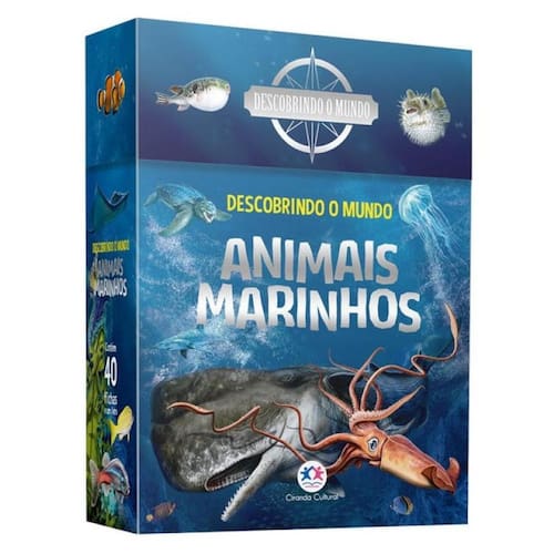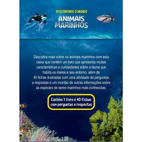 Descubra mais sobre os animais marinhos com esta caixa que contém um livro que apresenta muitas características e curiosidades sobre a fauna que habita os mares e seu entorno, além de 40 fichas ilustradas com uma atividade de perguntas e respostas e um montão de outras informações sobre as espécies de seres marinhos mais conhecidas.