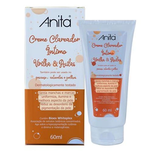O Creme Clareador Anita possui fórmula especial composta por extratos botânicos concentrados que agem na hiperpigmentação da pele, diminuindo assim a melanina no local onde o produto é aplicado.