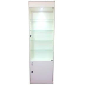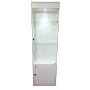 Anita Slim com Armário e Porta Com Armário e Porta de Vidro indicado para lojas que queiram proteger os produtos com porta e chave. INDICADO PARA: Lojas em geral, Residências: Colecionadores, MATERIAL: 100% MDF TX 15mm: o máximo em qualidade, durabilidade e resistência a riscos. Lâmpada led com bi volt 110v ou 220v. 4 Prateleiras removíveis em vidro temperado 5x mais resistente que o vidro comum. Porta de vidro com chave Armário em baixo para DIMENSÕES DA PRATELEIRA: Comprimento: 64cm, Altura: 210cm, Profundidade: 25cm, Distância entre as prateleiras: 28cm Marca: Não Informado