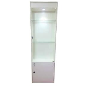 Anita Slim com Armário e Porta Com Armário e Porta de Vidro indicado para lojas que queiram proteger os produtos com porta e chave. INDICADO PARA: Lojas em geral, Residências: Colecionadores, MATERIAL: 100% MDF TX 15mm: o máximo em qualidade, durabilidade e resistência a riscos. Lâmpada led com bi volt 110v ou 220v. 4 Prateleiras removíveis em vidro temperado 5x mais resistente que o vidro comum. Porta de vidro com chave Armário em baixo para DIMENSÕES DA PRATELEIRA: Comprimento: 64cm, Altura: 210cm, Profundidade: 25cm, Distância entre as prateleiras: 28cm Marca: Não Informado
