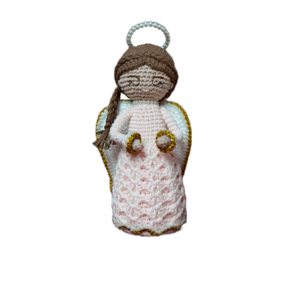 Este Anjo em amigurumi é perfeita para colecionadores de itens religiosos, bem como para aqueles que buscam presentear alguém especial com um símbolo de devoção e proteção, além de ser uma decoração encantadora.