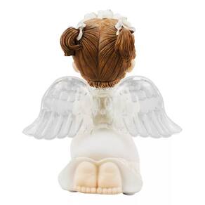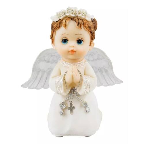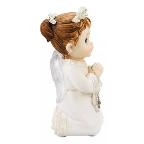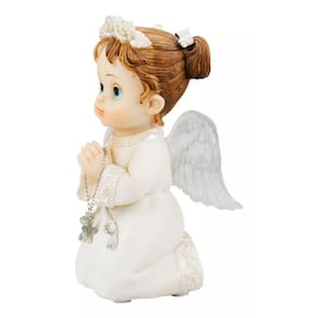 Enfeite decorativo no formato de um anjinho menina de 15 cm de altura usando roupa branca fazendo oração. Material: resina
