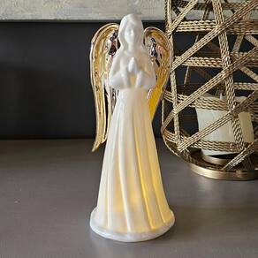 Anjo Decorativo Porcelana Branco Dourado 21cm Decoração Led Enfeite Decorativo de Anjo de Porcelana com LED Inigual Decor Adicione um toque de paz, elegância e luz à sua decoração de Natal com este Anjo Decorativo de Porcelana com LED da Inigual Decor. Esta peça é perfeita para simbolizar a serenidade e a beleza, criando um ambiente acolhedor e mágico em qualquer espaço da sua casa. Confeccionado em porcelana branca, o anjo possui um design clássico com delicadas asas na cor dourada, conferindo um visual sofisticado e atemporal. A iluminação de LED embutida projeta uma luz suave e acolhedora, destacando a figura e criando uma atmosfera de serenidade. Com 21,5 cm de altura, ele tem o tamanho ideal para mesas, prateleiras ou para compor um presépio com elegância. As pilhas já estão inclusas, permitindo que você a utilize imediatamente para iluminar sua decoração. É a escolha ideal para quem busca uma peça de alta qualidade que une a beleza da porcelana à magia da iluminação. Por Que Escolher o Anjo de Porcelana Inigual Decor Design Clássico: A porcelana branca e os detalhes dourados criam um visual elegante. Simbolismo de Paz: O anjo representa serenidade, ideal para a época natalina. Iluminação Acolhedora: Os LEDs internos proporcionam um brilho suave e convidativo. Praticidade de Uso: Com as pilhas inclusas, a peça está pronta para ser Utilizado assim que você a receber. Material de Alta Qualidade: A porcelana garante que a peça seja durável e com acabamento refinado. Especificações do Produto: Altura Aproximada: 21,5 cm Largura Aproximada: 9,0 cm Profundidade Aproximada: 8,0 cm Peso Aproximado: 410 g Material: Porcelana e LED Cor: Branco com asas douradas Conteúdo da Embalagem: 1 Enfeite Anjo Decorativo de Porcelana com LED Pilha inclusa Importante: Limpe delicadamente com um pano macio e seco. Observação: As imagens são ilustrativas. Itens decorativos adicionais exibidos nas fotos não acompanham o produto. Marca: Não Informado