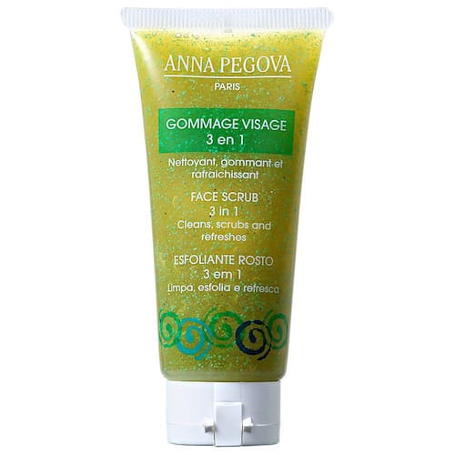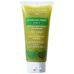 Esfoliante facial para todos os tipos de pele. Anna Pegova Gommage Visage 3 en 1 limpa, esfolia e refresca a pele com um único produto. Sua fórmula suave age de forma eficaz na remoção das células mortas, mas sem provocar ressecamento.