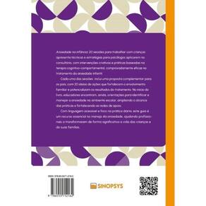 Ansiedade na infância: 20 sessões para trabalhar com crianças apresenta técnicas e estratégias para psicólogos aplicarem no consultório, com intervenções criativas e práticas baseadas na terapia cognitivo-comportamental, comprovadamente eficaz no tratamento da ansiedade infantil. Cada uma das sessões descritas no texto inclui uma proposta complementar para os pais, com 20 ideias de ações que fortalecem o envolvimento familiar e potencializam os resultados do tratamento. No início do livro, educadores encontram, ainda, orientações para identificar e manejar a ansiedade no ambiente escolar, ampliando o alcance das práticas e fortalecendo as redes de apoio. Com linguagem acessível e foco na prática diária, este guia foi pensado para ser um recurso essencial no manejo da ansiedade, ajudando profissionais a transformarem de forma significativa a vida das crianças e de suas famílias. Marca: Não Informado