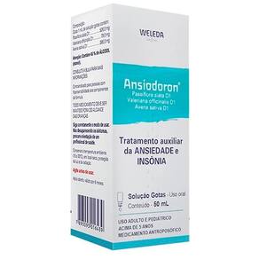 Ansiodoron líquido weleda 50mln ansiodoron é um antroposófico indicado no tratamento de ansiedade e insônia. Sua fórmula exclusiva conta com 3 ativos de origem 100% natural: officinalis, , avena sativa. Como usar o ansiodoron Adultos Administrar via oral 15 a 30 gotas, 2 vezes ao dia até melhora dos sintomas Crianças maiores de 5 anos Administrar via oral 15 gotas, 1 a 2 vezes ao dia até melhora dos sintomas ou conforme orientação médica. Composição officinalis, , avena sativa. Alérgicos Contém lactose. Quando não devo usar o ansiodoron Ansiodoron é contraindicado a pacientes com alergia aos componentes de sua fórmula. Informe seu médico sobre qualquer que esteja usando, antes do início, ou durante o tratamento. Gravidez e lactação: consultar médico. Informe ao seu médico a ocorrência de gravidez na vigência do tratamento ou após o seu término.Informar ao médico se está amamentando. Ansiodoron é um . Seu uso pode trazer riscos. Procure um médico ou um farmacêutico. Leia a bula. Medicamentos podem causar efeitos indesejados. Evite a automedicação: informe-se com o farmacêutico.