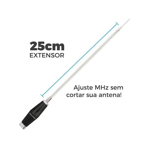 Antena para Rádio PX Veicular Mini Marinox B-2005P25 Compatível com Faixa Cidadão 10 e 11 METROS Prata com Prolongador