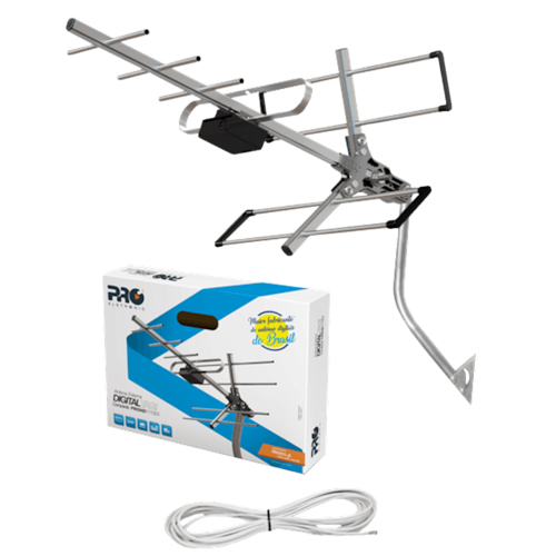 Kit Completo - Antena Digital Externa YAGI + Mastro + Cabo. A antena digital PROELETRONIC YAGI é ótima para a recepção de sinais de TV digital e analógica na faixa de UHF (canais 14~69). É uma antena completa e com ótimo ganho o que proporciona recepção de qualidade.