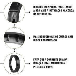 Com design dividido em duas peças, este anti block é resistente e mais robusto que os concorrentes, garantindo um encaixe perfeito sem precisar desmontar a roda ou remover a coroa para instalar.