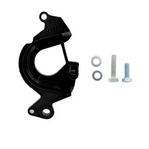 O protetor anti travamento se fixa ao redor do pinhão, para evitar que detritos ou outros objetos façam com que a corrente trave, ou a própria rotação danifique a corrente.