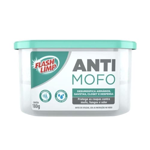 Anti Mofo Desumidificador Armário Guarda Roupa Closet 180g - Flash Limp Anti Mofo Desumidificador Armário Closet 180g Flash Limp Esse anti mofo FLASH LIMP é ideal para manter suas roupas sempre impecáveisCom seu design prático, protege as roupas contra mofo, fungos e mau odor.Possui fragância neutra. Retira até 400ml de umidade do ambiente Produto de ótima qualidade e material ultra resistente. ESPECIFICAÇÕES: Composição:polietileno, Filme Alumínio, TNT e Cloreto de Cálcio Quantidade: 01 Unidades Capacidade: 180g - Retira até 400ml de umidade MEDIDAS: Altura: 9cmLargura: 8,5cm Profundidade: 15,5cm