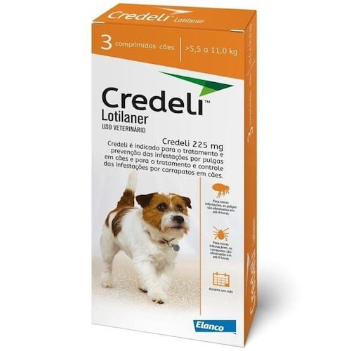 Credeli 225mg para cães de 5,5 a 11kg é um comprimido mastigável, pequeno e saboroso, que atua rapidamente para proteger cães filhotes e adultos contra carrapatos e pulgas por um mês inteiro. Credeli fornece atividade imediata e persistente por pelo menos 30 dias na eliminação de pulgas (ctenocephalides felis e ctenocephalides canis) e carrapatos (rhipicephalus sanguineus, ixodes ricinus, ixodes hexagonus, ixodes scapularis, dermacentor reticulatus, dermacentor variabilis, amblyomma cajennense e amblyomma americanum). Administração: Credeli é um produto pronto para o uso, comercializado em 5 diferentes concentrações. Deve ser administrado de acordo com as informações da tabela a seguir, de forma a garantir a dose de 20 mg a 43 mg de lotilaner/kg de peso corporal. Para cães acima de 45 kg de peso corporal, utilizar uma combinação apropriada de credeli. Deve ser administrado com alimento ou logo após a refeição para melhor absorção. Modo de ação: Seguindo a adm inistração oral, lotilaner é imediatamente absorvido e o pico de concentração sanguínea é alcançado em duas horas. A meia vida da molécula é de aproximadamente 4 semanas. Essa meia vida longa fornece concentrações sanguíneas efetivas para toda a duração do intervalo entre as doses. A principal via de eliminação é a excreção biliar e menos de 10% é por excreção renal. Lotilaner apresenta uma pequena porção metabolizada em mais compostos hidrofílicos, eliminados nas fezes e na urina. Composição (a cada 100mg): - lotilaner: 35,16mg - excipiente q.S.P.: 100,00mg Benefícios: No caso de infestações por carrapatos, credeli começa a eliminar os carrapatos 4 horas após a administração e para novas infestações são eliminados em até 8 horas. Credeli começa a eliminar as pulgas 2 horas após a administração, com eliminação total após 6 horas. Para novas infestações, as pulgas são eliminadas em até 4 horas durante um mês. Credeli pode ser usado como parte do tratamento de dermatite alérgica à picada de pulgas (dapp) e diminui o risco de doenças causadas por parasitas transmitidos pelos carrapatos, como a erliquiose em cães, resultado de sua rápida ação. Credeli elimina as pulgas existentes e as provenientes de novas infestações antes que sejam colocados ovos, devido ao seu rápido início de ação e a sua eficácia de longa duração. Portanto, o produto interrompe o ciclo de vida das pulgas e previne a contaminação ambiental nas áreas em que o cão tem acesso. Advertências: Não utilizar em caso de conhecida hipersensibilidade ao ingrediente ativo ou a qualquer um dos excipientes. Como para qualquer outro produto da classe das isoxazolinas, os parasitas precisam alimentar-se nos hospedeiros para iniciar a exposição ao lotilaner, o que significa que o risco de transmissão de doenças transmitidas por parasitas não pode ser completamente excluído. Estudos de laboratório realizados em ratos não evidenciaram qualquer efeito teratogênico, ou eventos adversos na capacidade reprodutiva de machos ou fêmeas. Informações: - indicação: somente cachorros - idade: filhotes, adultos, idosos - raças: pequenas, médias e grandes Itens que acompanham: - 03 comprimidos credeli 225mg (01 caixa). - leia a bula ou informações descritas na embalagem. - consulte sempre o médico veterinário de sua confiança para o uso apropriado deste medicamento.