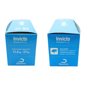 Conteúdo da embalagem: 20 - Comprimidos Invicto Nitempiram 57mg para cães e gatos de 11,4kg até 57kg Marca: Não Informado