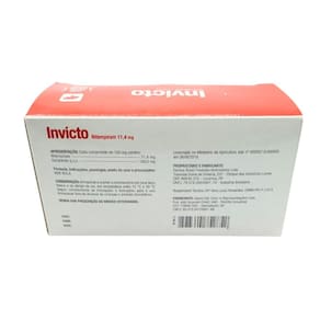 Ação: Ação contra pulgas a partir de 15 minutos. Invicto tem efeito Knock Down, ou seja, causa a morte imediata das pulgas, com início de ação a partir de 15 minutos, sendo ideal para eliminar infestações rapidamente. Persistindo à infestação após 24h pode ser necessário administrar mais comprimidos. É totalmente eliminado do organismo em até 48h. Não possui efeito duradouro.
