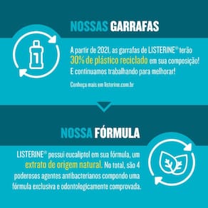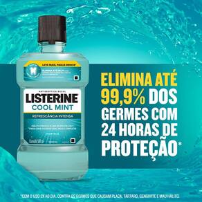 O Antiséptico Bucal Cool Mint Listerine elimina os germes e deixa a boca livre e protegida da placa bacterina e da gengivite, dando a você uma boca mais saudavél e um hálito levemente refrescante.