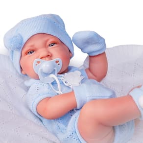 Esse adorável recém-nascido da linha Antonio Juan é um menininho encantador, ideal para crianças a partir de 3 anos que adoram brincar de cuidar. Com 42 cm de altura e corpo todo em vinil macio e com detalhes realistas, o Boneco RN Lui proporciona uma experiência lúdica de carinho e afeto. Ele vem com um delicado conjunto em tricô azul, manta branca, gorro com touquinha, macacão, luvinhas, sapatinhos e uma chupeta com corrente, tudo cuidadosamente coordenado para tornar a brincadeira ainda mais envolvente.