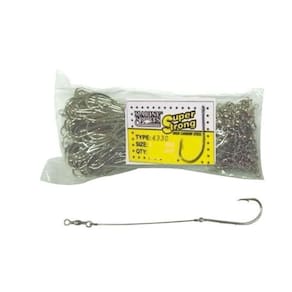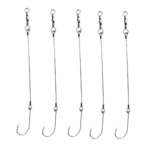 Anzol 6/0 = ; ;5cm x ; 2,3cm ; - 15,5 cm de cabo de aço 50 lb - girador = 2,3 cm.