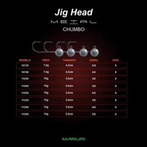 Anzol Maruri Jig Head metal Tamanho: 10g-3/0 O Anzol Maruri Jig Head é ideal para pescadores que buscam eficiência e precisão em pescarias com iscas soft. Fabricado em aço inoxidável de alta resistência, esse modelo conta com anzol de ponta única e cabeça moldada que garante estabilidade e nado natural da isca, favorecendo a captura de predadores como tucunarés, robalos, traíras e outros. Seu design oferece excelente e fixação, sendo especialmente indicado para montagem de iscas artificiais em ambientes de água doce e salgada. Com embalagem contendo 6 unidades, o Jig Head da Maruri é uma escolha versátil e confiável para diferentes técnicas de pesca esportiva. Especificações do Produto Modelo: Jig Head Marca: Maruri Material: Aço inoxidável Ponta: Única Quantidade: 6 unidades Aplicação: Iscas soft, montagens artificiais Indicado para: Peixes predadores ex: tucunaré, traíra, robalo Uso: Água doce e salgada Marca: Não Informado