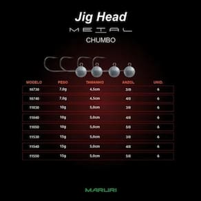 Anzol Maruri Jig Head metal Tamanho: 7g-3/0 O Anzol Maruri Jig Head é ideal para pescadores que buscam eficiência e precisão em pescarias com iscas soft. Fabricado em aço inoxidável de alta resistência, esse modelo conta com anzol de ponta única e cabeça moldada que garante estabilidade e nado natural da isca, favorecendo a captura de predadores como tucunarés, robalos, traíras e outros. Seu design oferece excelente e fixação, sendo especialmente indicado para montagem de iscas artificiais em ambientes de água doce e salgada. Com embalagem contendo 6 unidades, o Jig Head da Maruri é uma escolha versátil e confiável para diferentes técnicas de pesca esportiva. Especificações do Produto Modelo: Jig Head Marca: Maruri Material: Aço inoxidável Ponta: Única Quantidade: 6 unidades Aplicação: Iscas soft, montagens artificiais Indicado para: Peixes predadores ex: tucunaré, traíra, robalo Uso: Água doce e salgada Marca: Não Informado