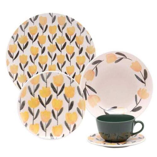6 Pratos Fundos 20,5 Cm, 6 Pratos Rasos 26 Cm, 6 Pratos Sobremesa 18,5 Cm, 6 Xícaras Grandes 200 ML, 6 Pires 14 Cm