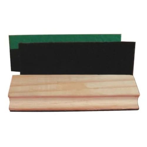 Apagador de madeira com base em carpet natural, medindo 17 x 5,5 cm. Auxilia os professores na aplicação das aulas. Recomendado para todas as idades.
