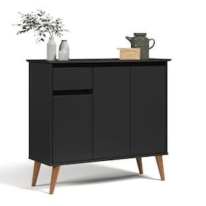 Aparador 1 Gaveta 3 Portas Londres Preto Buffet aparador foi projetado para agregar diferentes espaços e ambientes, proporcionando elegância, charme e sofisticação. Conta com uma gaveta para organização de objetos com corrediças telescópicas deixando a abertura e o fechamento muito mais delicado e macio, que aumentando a durabilidade do produto. Dimensões do produto montado: Altura: 83 cm Largura: 93 cm Profundidade: 35 cm Características: - Material MDF/MDP - Cor preto - Nicho - Pés - Prateleira - Porta - Gaveta Itens Incluso: 01 Aparador. Kit completo para montagem. Manual de montagem. Observações: - Não nos responsabilizamos pela montagem do produto. - Sistema de Montagem: Parafusos, Cavilhas e Tampos. - É recomendado que a montagem seja feita por um profissional qualificado. - As imagens indicam uma sugestão de uso e são apenas ilustrativas, os objetos decorativos não estão inclusos. - Ao iniciar a montagem, forre o chão com o papelão das embalagens para proteger as peças de arranhões. Instruções e Cuidados: Limpar com pano seco, manter em lugar livre de umidade, ao abrigo de exposição direta ao sol. GARANTIA DO FABRICANTE: 3 | QUANTIDADES DE CAIXAS DE EMBALAGEM: 1 | COR PREDOMINANTE: PRETO | CORES DO PRODUTO (FILTRO DE CORES): PRETO | DESCRIÃ?Ã?O DO TAMANHO: 83X93X35 | MATERIAL PRINCIPAL: MDF/MDP | ESTADO DE ORIGEM: SP | INSTRUÃ?Ã-ES/CUIDADOS: Limpar com pano macio e seco, nÃo utilizar produtos abrasivos. | PRODUTO PRECISA DE MONTAGEM?: Sim, a montagem à facil mas sugerimos a contrataÃÃo de um montador profissional para a montagem do produto. NÃo nos responsabilizamos por danos causados no ato da montagem. | ALTURA DO PRODUTO (CM): 83 | LARGURA DO PRODUTO (CM): 93 | COMPRIMENTO DO PRODUTO (CM): 35 | PESO DO PRODUTO (KG): 26 | ALTURA DO PRODUTO COM EMBALAGEM (CM): 15 | COMPRIMENTO PRODUTO COM EMBALAGEM (CM): 98 | PESO PRODUTO COM EMBALAGEM (KG): 26 | PRODUTO: APARADAOR | MARCA: CASAH | QUANTIDADE DE PORTAS: 3 | LARGURA PRODUTO COM EMBALAGEM (CM): 38 | QUANTIDADE DE NICHOS: 2 | QUANTIDADE DE GAVETAS: 1 | QUANTIDADE DE PRATELEIRAS: 1 Ean: 7901034129756