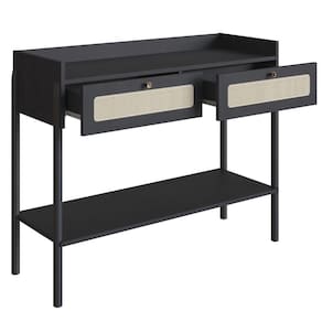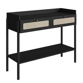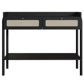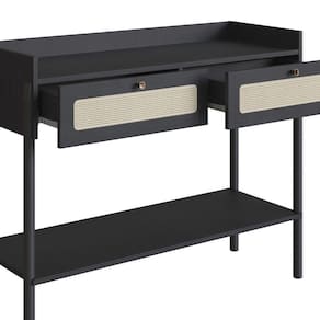 Aparador 2 Gavetas Oslo Artesano 103 Cm (largura) Mdp Nero Palha Sintética Bege Pé Madeira Maciça