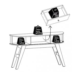 Características: 1 Gavetas Corrediças telescópicas Estrutura em MDP Painéis em MDP de 12,15 e 25 mm Peso total suportado 25 kg Puxadores em poliestireno cromado Revestimento com pintura DIP Sistema de fixação Girofix Tampo e base com detalhes curvos