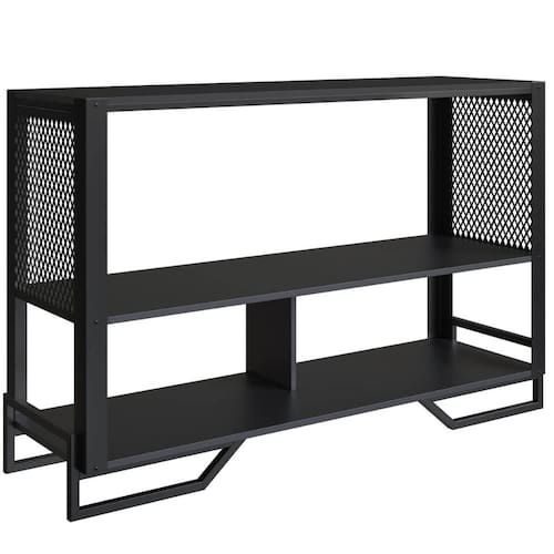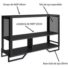 Aparador 2 Prateleiras Estilo Industrial Telado P1021 Preto Placa e Ponto