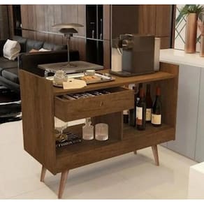 Aparador com desing arrojado e pé de madeira proporciona maior charme ao seu cantinho do café ou para sua sala. A gaveta pode ficar a direita ou a esqueda do aparador trazendo mais praticidade ao móvel.