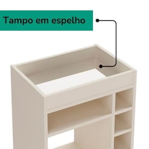 Características adicionais: Tampo em espelho, nichos para garrafas, compacto;