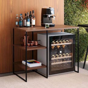 que tal o aparador adega bourbon? móvel curinga que se encaixa bem em qualquer decoração, o aparador adega bourbon vai complementar seu lar-style com maestria! seja para uso na sala de estar, na sala de jantar ou até num corredor, criando aquele cantinho do café bonito, ele tem bom espaço de tampo e prateleiras para acomodar objetos de uso diário ou itens decorativos. já o design que une estrutura em aço e prateleiras amadeiradas tem um ar industrial e moderno que vai embelezar seu cantinho.